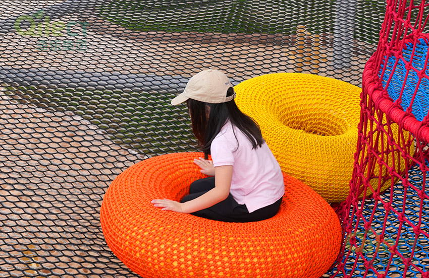 繩網采用進口高密度材質,即使多人同時攀爬也穩如磐石;網格間距經過人體工學測算,既保證安全性,又讓腳掌能精準踩到支撐點——這不是簡單的“繩網區”,而是用專業守護的“親子互動空間”。