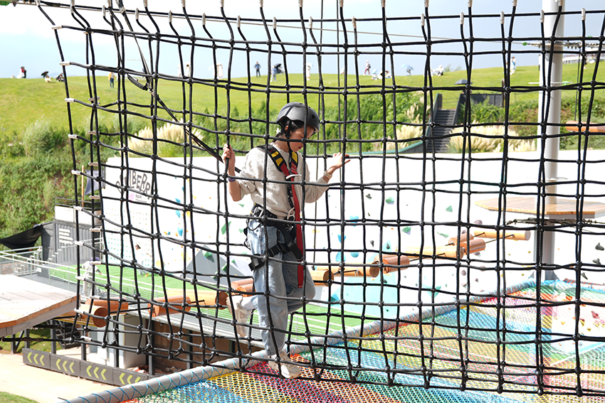 二層設計為一個繩網體驗層+16個拓展步道,輕極限體驗,挑戰難度適中,可以讓挑戰者更好的適應,先培養信心,以便完成更高一層的挑戰。