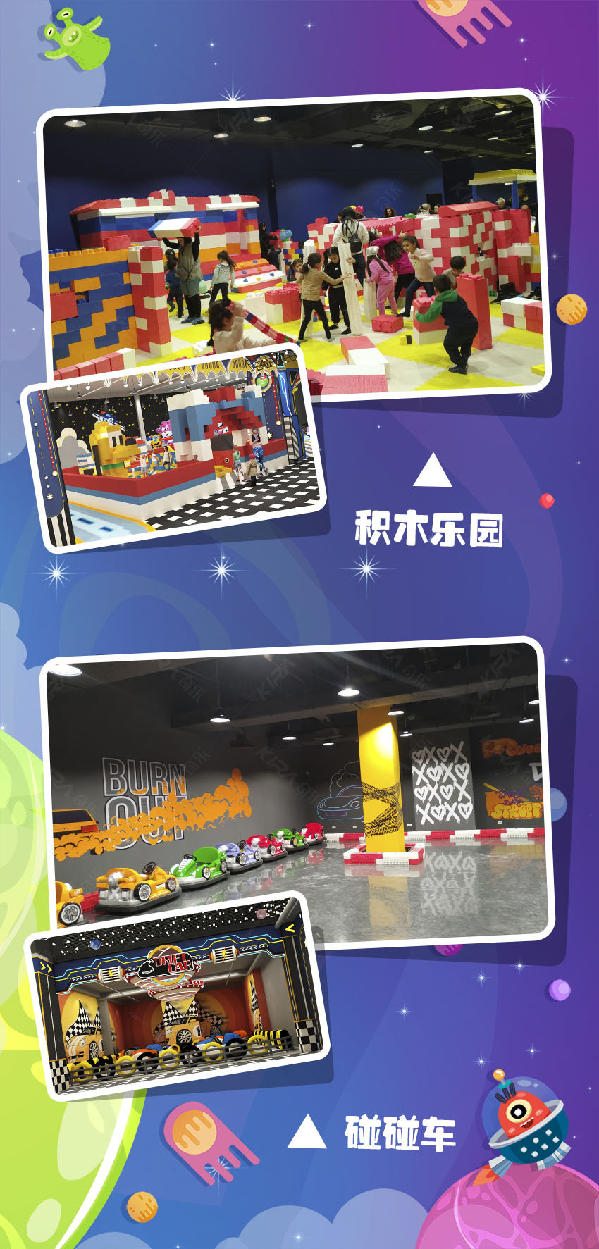 極富創意的未來科技風格,多元太空背景設計交相輝映。用想象力襯托藝術之美,令孩子們打開通往新世界的大門,編織屬于自己的童夢幻想。給時間以無盡色彩,讓生命充滿溫情追憶! 亞美尼亞親子運娛中心,新潮科幻風卡通元素,打造國際范太空主題樂園,用心為每個家庭創造甜蜜回憶!