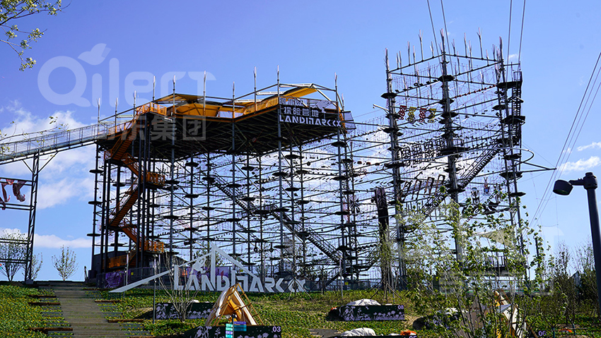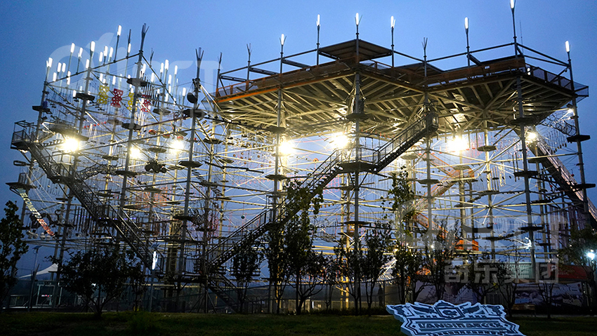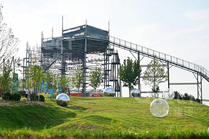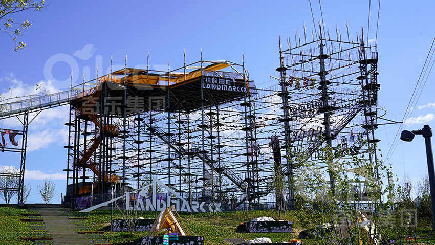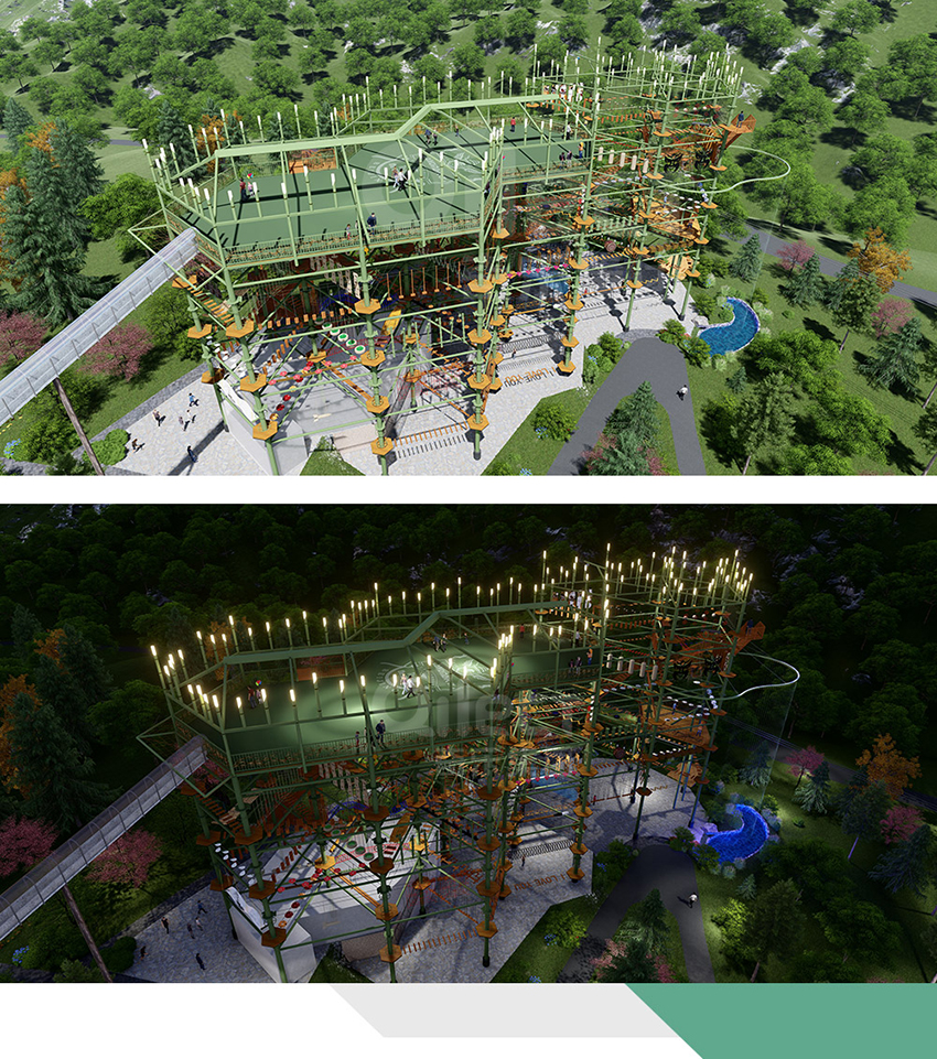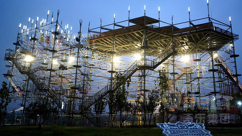 項目整體地形為階梯地形,在造型上因地制宜的巧妙引用當地溫榆河公園喬木林數萬棵大樹,給人一種四季皆美的“林海畫卷”的美感,頂部運用“蘆葦”造型的燈飾點綴,燈飾照明設備使用密集林立的太陽能環(huán)保節(jié)能燈桿,在夜間矗立山頂猶如繁星灑落構成璀璨夜景極具視覺藝術感。