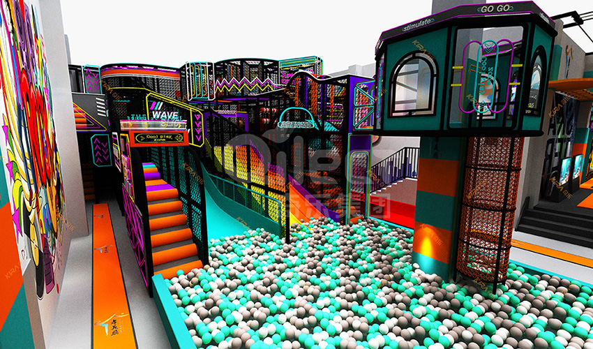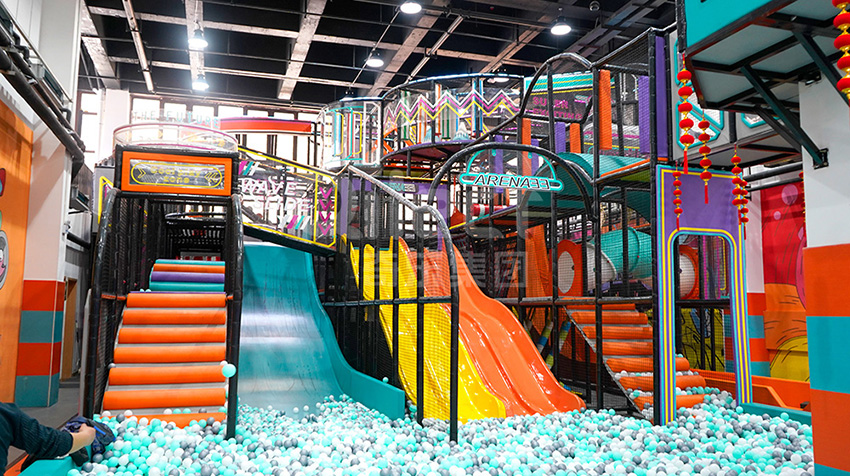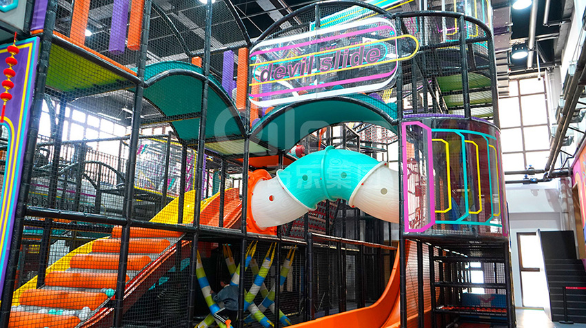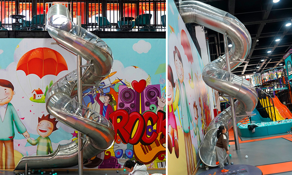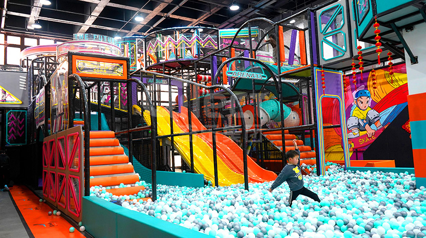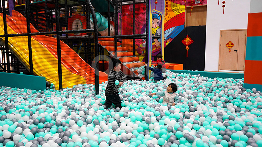 海洋球池里配備有滑梯,從波浪起伏的滑梯上一滑而下,落在滿滿的海洋球池里,更加的驚險有趣,這種
