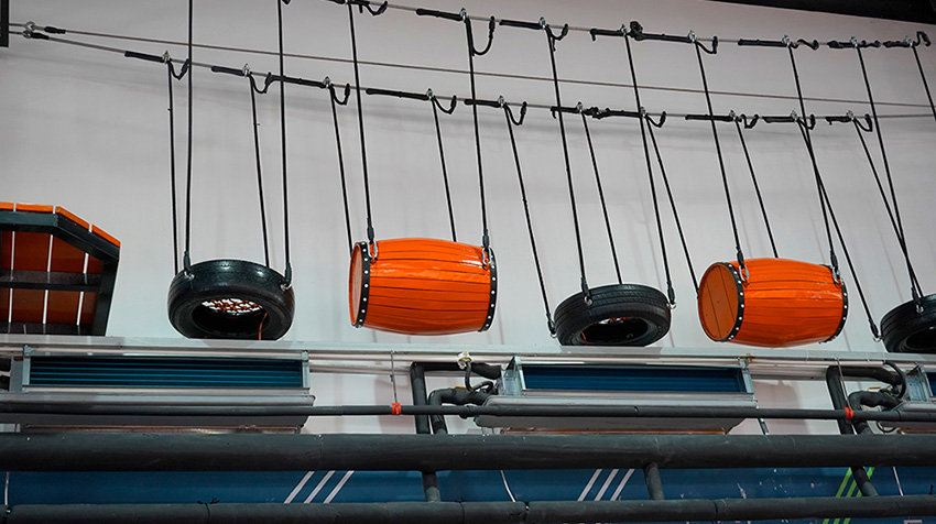 玩膩了地面上的滑梯,沒關(guān)系,我們在空中也設(shè)計了游玩拓展步道,木桶、輪胎、搖擺橋、獨木橋、圓筒通道、“M”字吊橋等多個項目任你體驗,更有空中自行車項目,勇者來戰(zhàn)!
