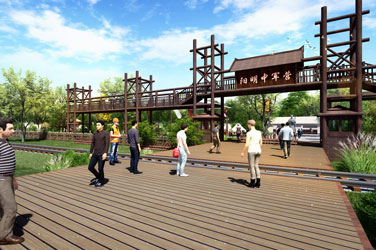 陽明寨景區(qū)位于江西省崇義縣,總規(guī)劃面積6.2平方公里,本次陽明中軍營板塊設(shè)計面積為:33畝。陽明中軍營主要以軍事文化體驗為主。場地以農(nóng)田和樹林為主,毗鄰河流,并且有一條小溪流途徑場地中央,已建公共衛(wèi)生間,地勢較為平坦,環(huán)境優(yōu)美。1、以軍事文化為主題,整體采用原生態(tài)設(shè)計元素
